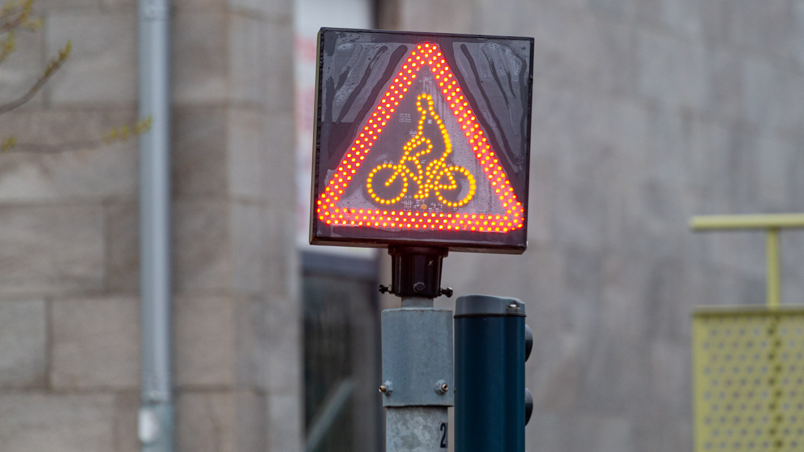 Eftersom sekundärlykta för cyklister inte används i Göteborg så används i lämpliga fall variabla meddelandeskyltar med cykelsymbol. Dessa uppmärksammar fordonsföraren på att cyklisten har grönt samtidigt som svängande fordon, se bild ovan.