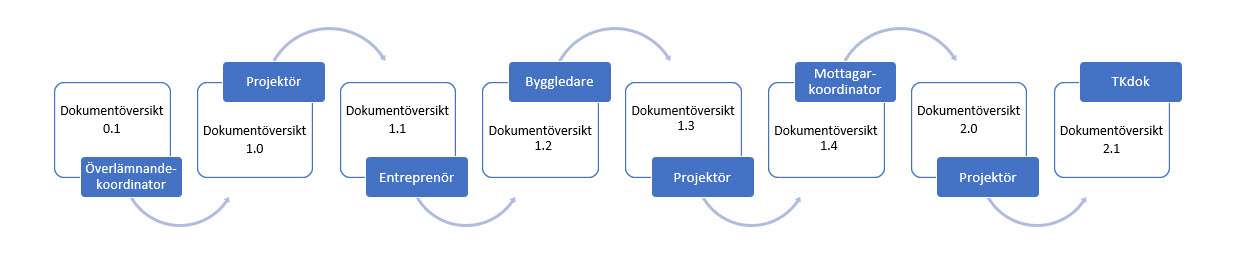 Nedan bild beskriver schematiskt flödet av dokumentöversikten i ett normalt anläggningsprojekt.