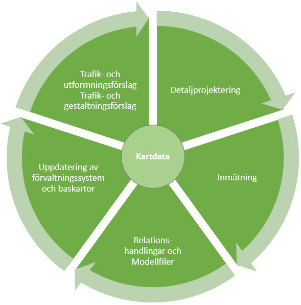 Nedan bild beskriver schematiskt flödet av kartdata i ett normalt anläggningsprojekt.