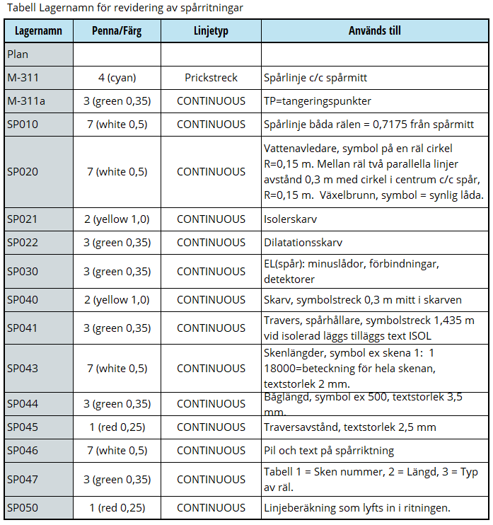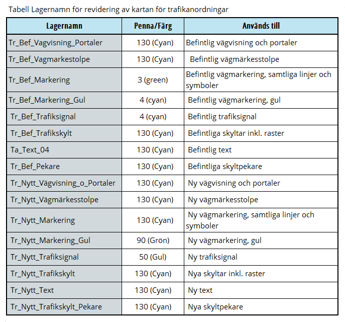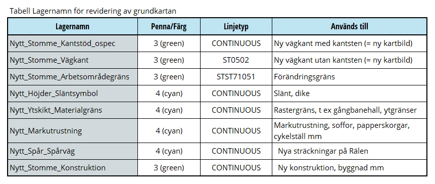 Lagernamn och ritningsbeteckningar enligt 12CE3 Ritningsbeteckning Kommunala samlingskartan och 12CE4 Lagerstruktur Kommunala samlingskartan.