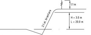 I närheten av bostadsområden (främst med tanke på lekande barn) och i livligt frekventerade strövområden, där faran plötsligt dyker upp exempelvis i tät vegetation, ska stängsel uppsättas ovanpå bergskärningar enligt följande.