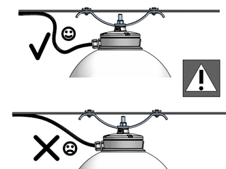 Vid montage av linarmaturer ska lyktledning monteras enligt den övre bilden.