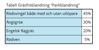 Tre typer av ängsfröblandning ersätter nuvarande trafik- och naturmarksblandningen och fröblandning för skugga.