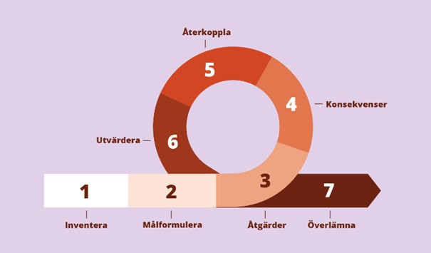 Vilka åtgärder behövs för att nå målen? Vem eller vilken process ansvarar för att de förverkligas? Behöver vi inhämta mer kunskap i det här steget, exempelvis fördjupad dialog med en specifik användargrupp eller liknande? Hur tas erfarenheter från inventeringen tillvara i projektet?