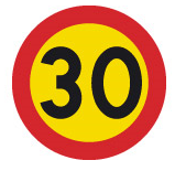 SKOLA plus 30 M29 Hastighet kan markeras på gatan om det finns en så kallad ”Skol-30” (reglering 30 km/tim mellan 7-17 under vardagar).