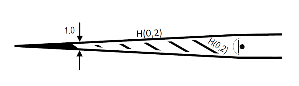 Avstånd mellan snedstrecken är normalt 3 m eller vid stora ytor 6 m. Lutningen ska vara 1:2. Spärrområden framför refuger, se nedan. Längden bör anpassas efter platsen.