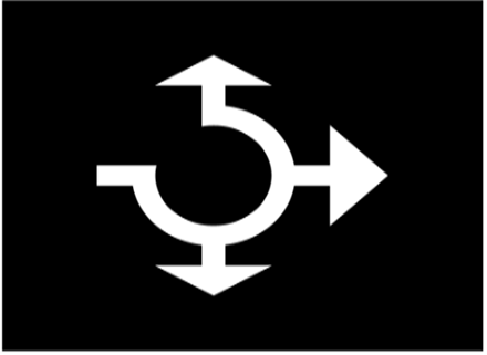 M19a Körfältspil för cirkulationsplatser används endast i större cirkulationsplatser utanför stadsmiljö, i anslutning till leder.