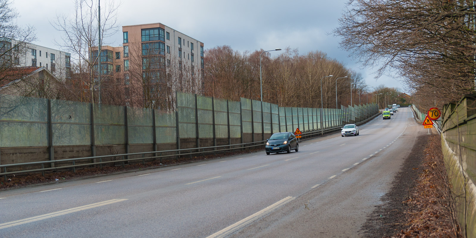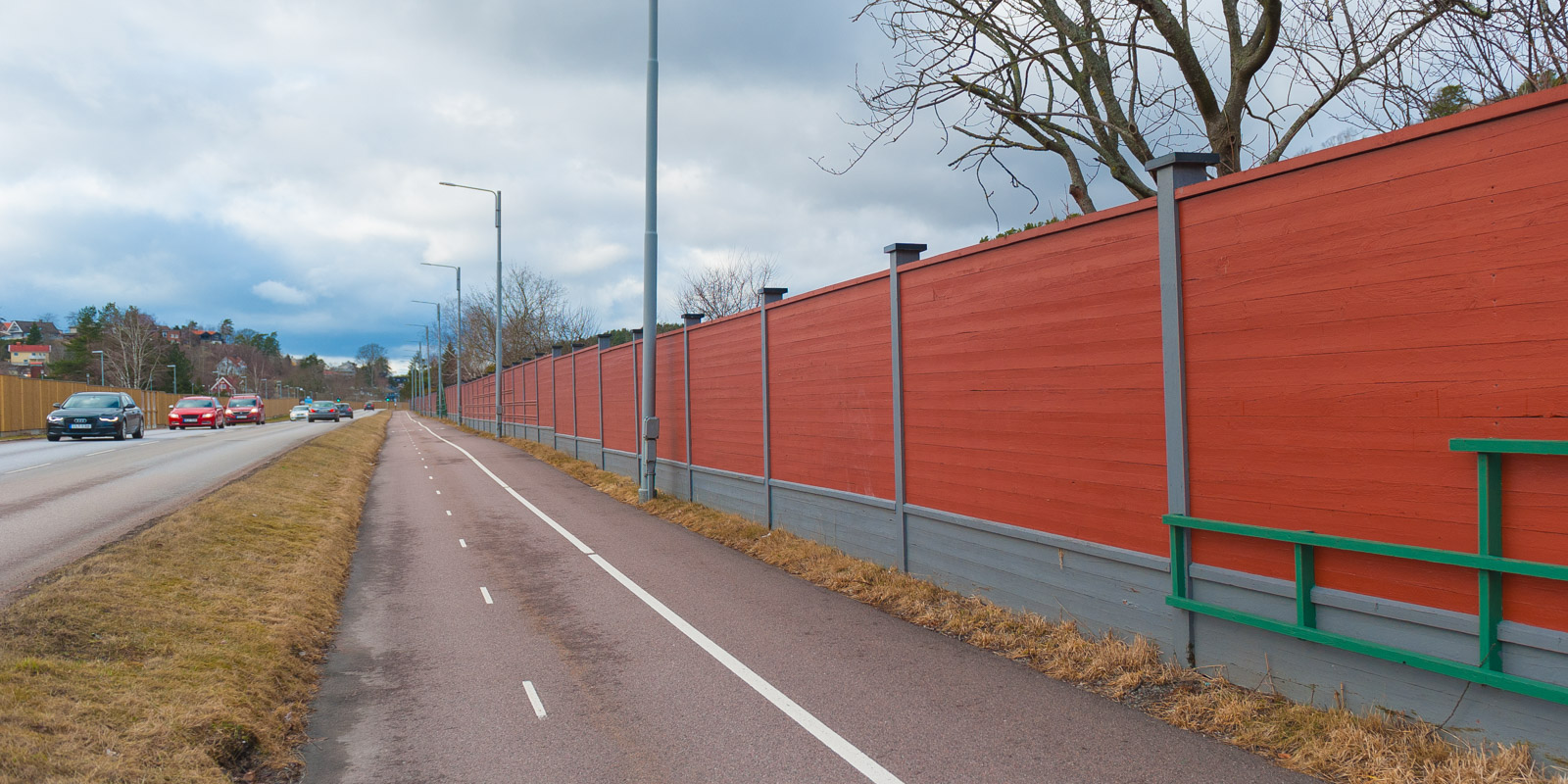 - Hög standard: Skärm med estetiskt god utformning med exempelvis glas över broar och absorberande material där så krävs för att inte ge reflexion mot befintlig bebyggelse
